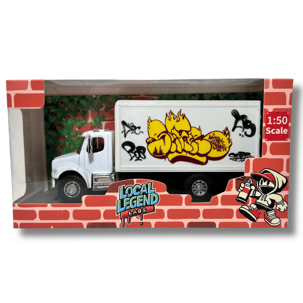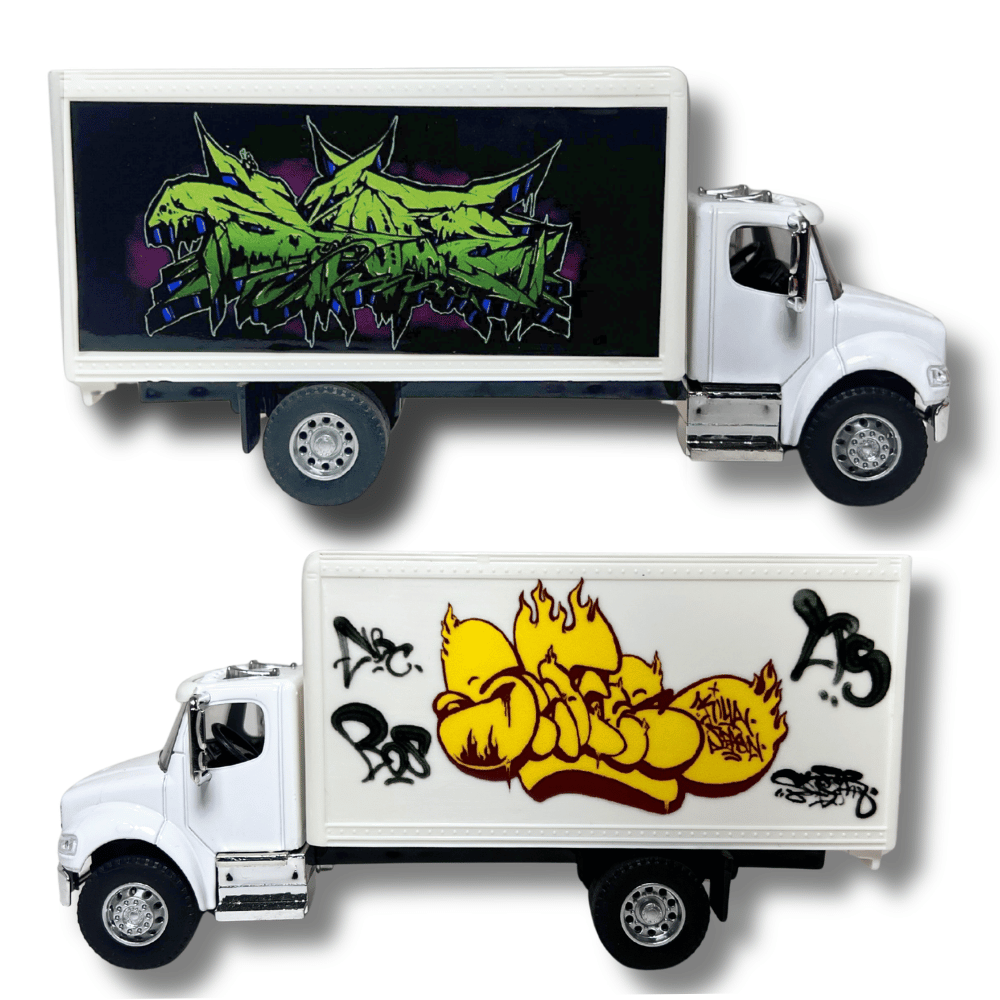 This collectible features double sided authentic artwork from the streets on both sides of the truck.